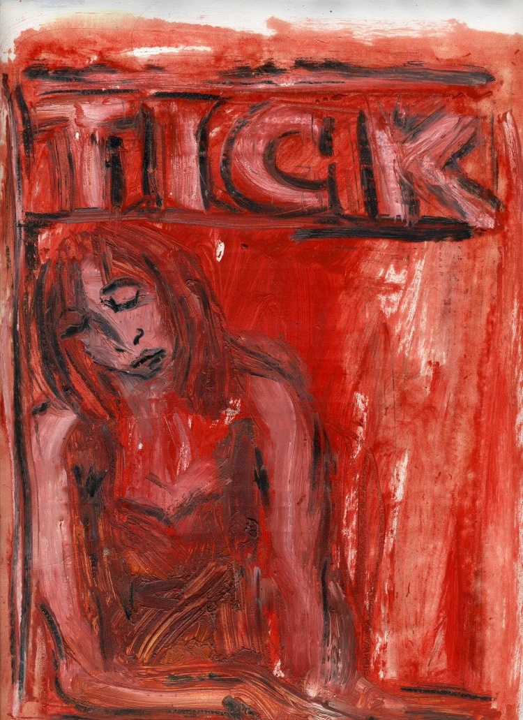 In much of her work, Jan Wurm portrays humans partaking in unpleasant activities, and her art fits in style the messages it conveys. The hyper-realism of the strong man’s distorted proportions show the disassociation between Wurm’s vision of the ideal and her view of his occupation. The ticket seller’s booth, bathed in the dull monotone red of neon lights, reflects both the falsity of the carnival and the bored melancholy of a woman who would rather be somewhere else.